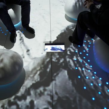 LightShowers, an immersive installation inspired by medical research at Columbia Presbyterian Hospital, integrates 'bio-feedback' technology with video images of nature.